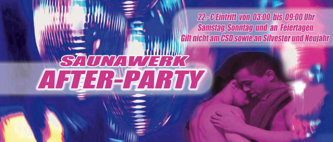 Immer Samstag Sonntag und an Feiertagen. zwischen 03.00h und 09.00h – Nur 22.- € Eintritt Gilt nicht am CSD sowie an Silvester und Neujahr.